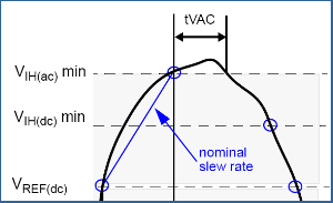 The JEDEC DDR3 specification (JESD79-3A) defines a new waveform quality parameter, Time Beyond VAC, or TVAC. This parameter defines the length of time a signal must spend beyond the AC thresholds in order for a transition to be considered valid. This time is dependent on the slew rate of the signal at the receiver input.