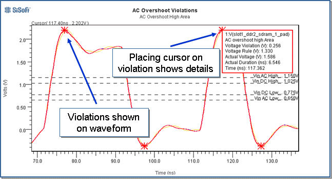 Quantum-SI 2008.04 adds parameters the IBIS model that allow Quantum-SI to automatically determine whether TVAC requirements are being violated during waveform processing. Violations are automatically flagged and included in the Waveform and Timing report. Violations may also be annotated directly onto waveforms in the SiViewer simulation results display.