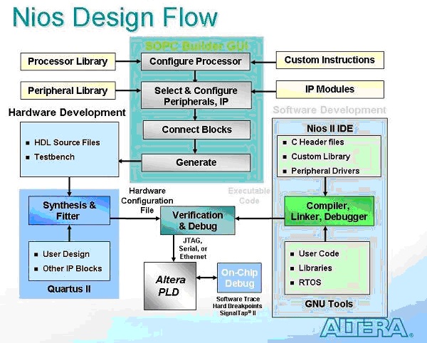 贴张官方的nios设计流程图,看起来很漂亮是吧,不愧是altera的东西,大而全而不乱。