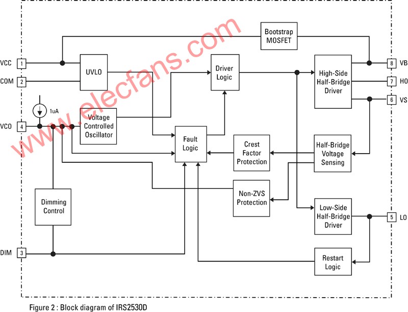 图2:IRS2530D的方框原理图。