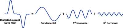 当60Hz行扫描频率的第三谐波和第五谐波成为谐波的主要组成部分时,所有频率分量(包括60Hz基频)的矢量总和就可以达到峰值,该峰值超过基本相位电流振幅的100%以上。