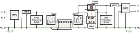 如隔离式DC/DC转换器的电源隔离器以及如数字电容隔离器的信号隔离器避免了电流环路的创建及电流在具高达数千伏GPD的远程系统接地间流动。