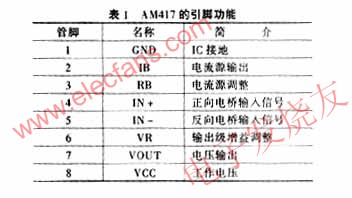 图1所示是AM417接口集成电路的引脚排列,表1所列为其引脚功能说明。