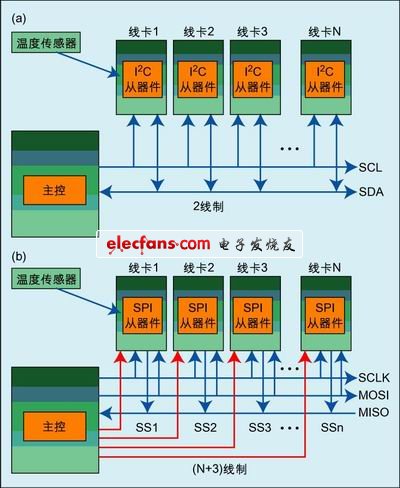 图3:(a)I2C总线/SMBus系统接口;(b)SPI 系统接口。