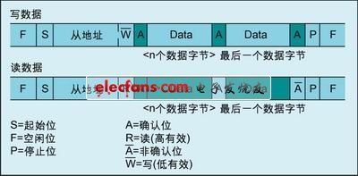 I2C允许多个主器件工作在同一总线上。多个主器件可以轻松同步其时钟,因此所有主器件均采用同一时钟进行传输。多个主器件可以通过数据仲裁检测哪一个主器件正在使用总线,从而避免数据破坏。由于I2C总线只有两条导线,因此新从器件只需接入总线即可,而无需附加逻辑。图4 显示了典型的I2C总线读/写操作。