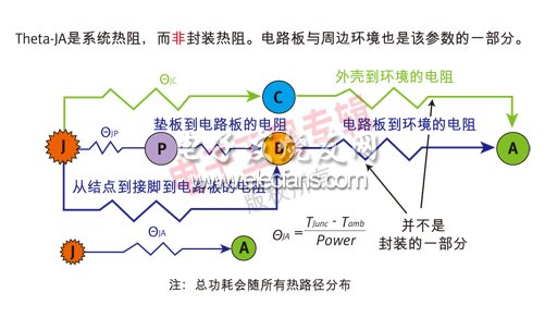 到目前为止,封装热性能最常见的度量标准是Theta JA,即从结点到环境所测得(或建模)的热阻(参见图1)。Theta JA值也是最需要解释的内容(参见图2)。能够极大影响Theta JA 测量和计算的因素包括: