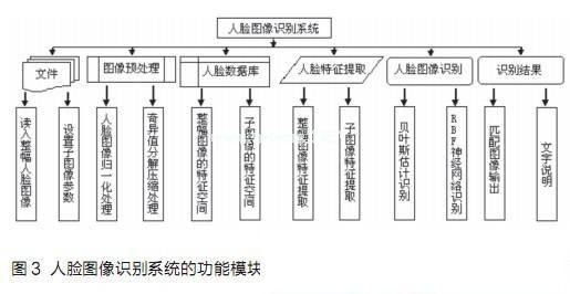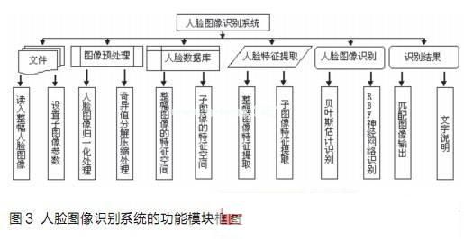 人脸图像识别模块链接着基于贝叶斯估计的分类识别方法、基于RBF网络和贝叶斯分类器融合的人脸识别方法两个选项。