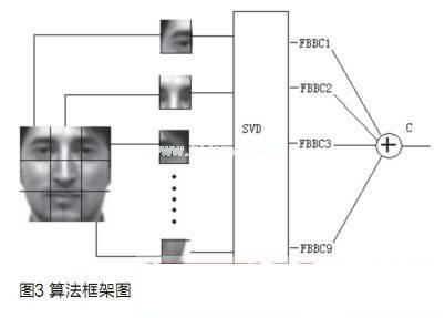 人脸图像分块后应用奇异值分解方法进行数据压缩,对每个特征分块设计一个贝叶斯分类器,最后将这些分类器融合(如图3所示)。