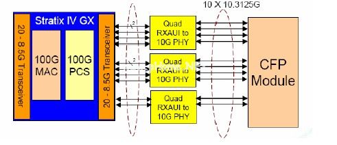 这一推荐的解决方案利用了当前的辅助系统和第三方MLD复用PHY来提供40-nm技术节点的业界标准100G平台。Altera 致力于为100G 网络平台的实现提供最佳解决方案。
