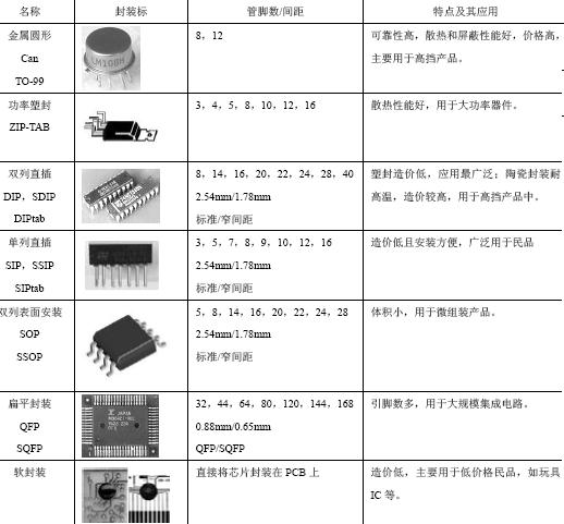 表1-17 常见集成电路封装及特点。