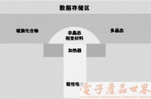 奥弗辛斯基(Stanford Ovshinsky)在1968年发表了第一篇关于非晶体相变的论文,创立了非晶体半导体学。一年以后,他首次描述了基于相变理论的存储器:材料由非晶体状态变成晶体,再变回非晶体的过程中,其非晶体和晶体状态呈现不同的反光特性和电阻特性,因此可以利用非晶态和晶态分别代表“0”和“1”来存储数据。后来,人们将这一学说称为奥弗辛斯基电子效应。相变存储器是基于奥弗辛斯基效应的元件,因此被命名为奥弗辛斯基电效应统一存储器(OUM),如图2所示。从理论上来说,OUM的优点在于产品体积较小、成本低、可直接写入(即在写入资料时不需要将原有资料抹除)和制造简单,只需在现有的CMOS工艺上增加2~4次掩膜工序就能制造出来。