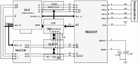图2 MAX115与TMS320F240 DSP之间的接口电路图