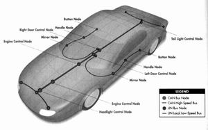 仅仅简单地用导线将这些新的电子系统连接起来并不能构成可行的解决方案。解决问题的一种方法是利用串行通信总线来代替电子模块间的连线。采用串行通信总线可减小导线束中导线的数量和连接数量,从而降低成本并提高可靠性。同时由于设计重量减轻,还可提高燃料效率。