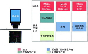 由于MIPI的推动企业都是移动电话机和面向移动电话机的LSI的最大企业,影响力很大,所以移动电话机部件依从的可能性极高。除该标准外,标准接口还有液晶板控制器与处理器间的接口规格,也提出了多种方案(图4),各方案均在于减少液晶板组件与处理器之间的连线数量。