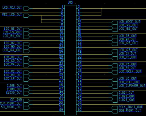 为了保持走线的整洁和有序,建议将LCD连接器的信号安排在同一个走线区域,避免走线散乱。可以考虑使用蛇形走线等技巧,来控制信号长度和时序,以满足偏差要求。