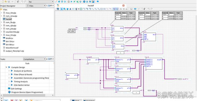 Lpm_counter256是参数可设置的计数器,用于产生lpm_rom256的8位地址,并从q[7..0]端输出。