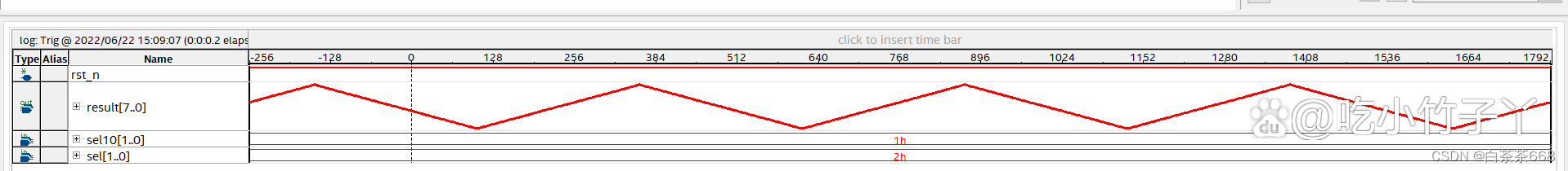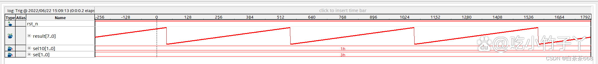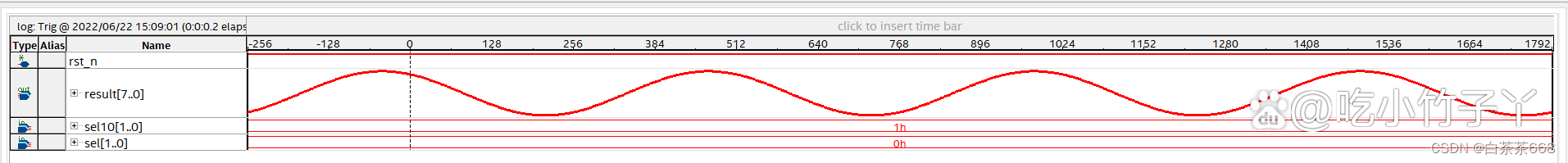 设计了三个波形为的正弦波,方波,三角波。结果由输出端q[7..0]输出到四选一选择器,由sel[1..0]选择控制。