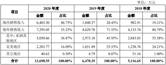 招股书显示,2018年、2019年,概伦电子的营业收入大部分来自于境外收入(美国、 韩国、日本、中国台湾等区域),占比达70%以上。2020年,政府加大了对集成电路行业的扶持,同时在国产浪潮的机遇下,概伦电子大力拓展境内业务,境内销售收入几乎翻倍,占比达到46.75%。