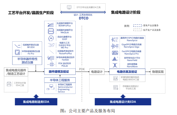 在竞争优势上,华大九天是我国唯一能够提供模拟电路设计全流程EDA工具系统的本土EDA企业,而概伦电子是唯一一家以EDA工具授权业务为主的同行业公司。自成立以来,概伦电子就围绕“提升集成电路设计和制造竞争力的良率导向设计(DFY)”进行技术研发和产品布局;另一方面,概伦电子围绕“设计-工艺协同优化(DTCO)”方法学,通过快速精准的电路仿真帮助集成电路设计企业有效预测芯片的性能和良率,优化电路设计。