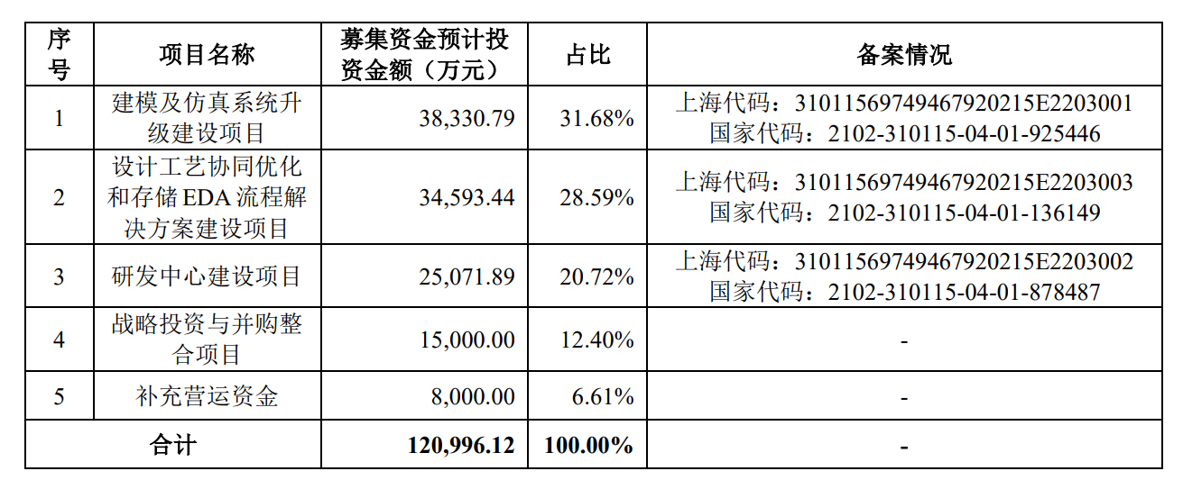 招股书显示,概伦电子拟募资的12.1亿元中,将有34,593.44 万元用于“设计工艺协同优化和存储 EDA 流程解决方案建设项目”,该项目将在现有 DTCO 方法学与创新成果的基础上,继续针对复杂存储器芯片的设计和制造要求,研究开发存储器芯片全流程设计平台及其相关EDA工具。