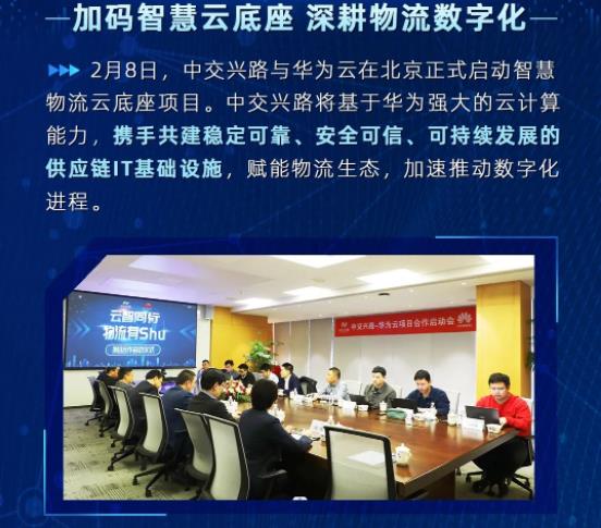 中交兴路将基于华为强大的云计算能力,携手共建稳定可靠、安全可信、可持续发展的供应链IT基础设施,赋能物流生态,加速推动数字化进程。