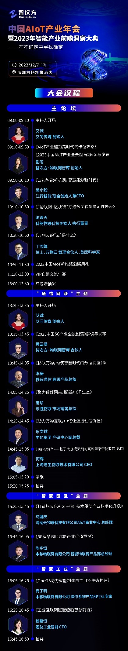 物联网智库与挚物产业研究院即将于12月7日在深圳机场凯悦酒店,主办以“不确定中寻找确定”为主题的“中国AIoT产业年会暨2023智能产业洞察大典”。