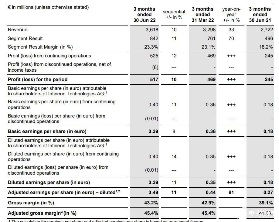 据悉,英飞凌的Q3财报显示,三季度英飞凌实现营收36.18亿欧元,相比去年同期同比增长33%;公司第四季度营收达到创纪录的41.43亿欧元,同比增长38%,环比增长15%。其中2022财年汽车部(ATV)营收为65亿欧元,同比增长35%;工业电源控制部(IPC)营收18亿欧元,同比增长16%;功率传感系统部(PSS)营收为41亿欧元,同比增长25%;互联安全系统部(CSS)营收为18亿欧元,同比增长30%。