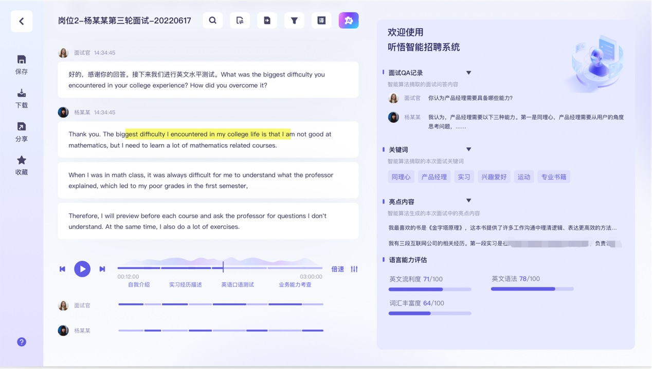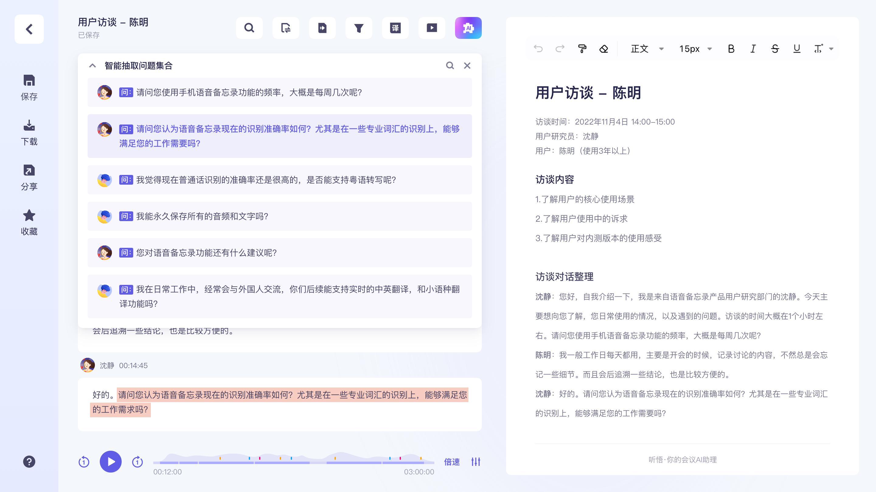 (“听悟”进阶版可实现问答抽取,人物及对话为示例)
