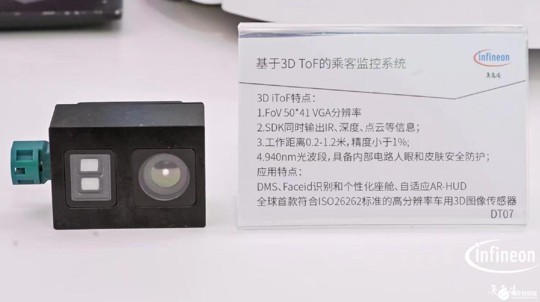 扫地机器人中ToF的避障功能,使得机器人高效运转。智能座舱感应上ToF可以根据驾驶员的人脸ID,判断其座椅的距离,从而调整到适合的位置。现场展出的清洁机器人上,使用英飞凌 3D ToF 图像传感器IRS2875C的模组,实现了两个重要的功能,一个是扫描建模,再加上避障两个功能二合一。现场还展出了3D ToF的乘客监控系统,可以应用在个性化的汽车座舱内,还有基于3D ToF的人脸识别+驾驶员监控系统。