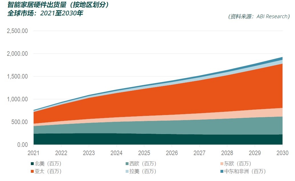 智能家居硬件出货量(2021-2030) 图源:ABI Research