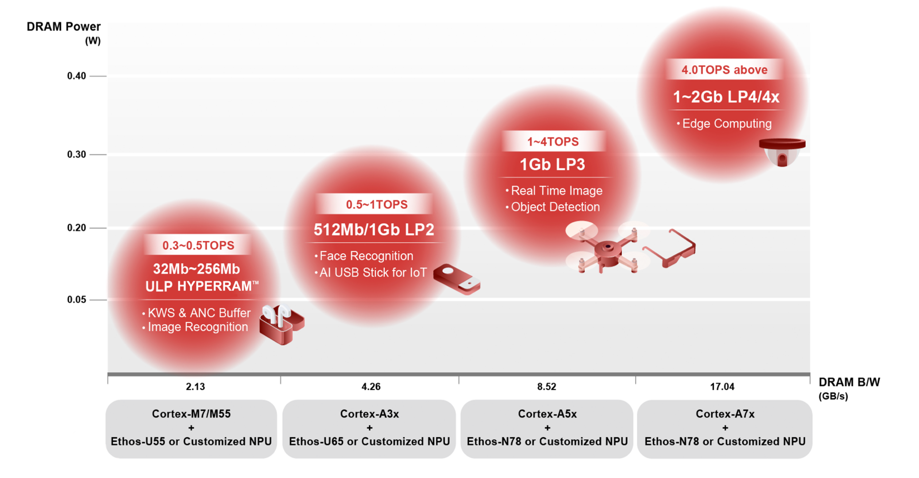 为了应对上述变化,华邦在产线中引入了GP-Boost™ memory概念,覆盖从32Mb-256Mb ULP HYPERRAM到1-2Gb LPDDR4/4X内存的所有产品。用户可以根据不同物联网设备的属性和要求,自由选择对应的DRAM容量、性能和功耗。