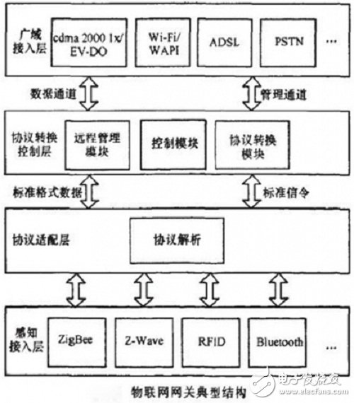 作为连接感知层与网络层的纽带,物联网网关可以实现感知网络与通信网络,以及不同类型感知网络之间的协议转换.既可以实现广域互联.也可以实现局域互联。在无线传感网中,物联网网关是不可或缺的核心设备。此外物联网网关还需要具备设备管理功能,运营商通过物联网网关设备可以管理底层的各感知节点,了解各节点的相关信息,并实现远程控制。
