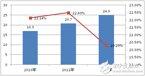 根据国际物促会(IIPA)的市场调研数据显示,2010-2012年的中国智能家居市场已经连续三年保持超过20%的增长,其中,2012年的市场规模达到24.9亿元,增长率为20.29%。