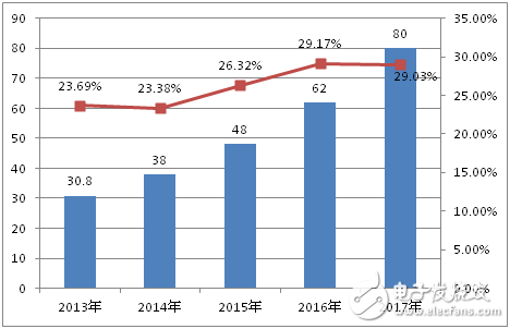 图表3 2013-2017年中国智能家居市场规模(单位:亿元)