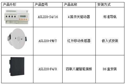 系统采用超六类屏蔽网线作为总线线缆,将所有智能照明控制,模块连接到一起并组成一套完整的控制系统,既可以实现照明灯具的远程集中控制,又可实现就近控制功能。智能照明控制系统设备如下表所示: