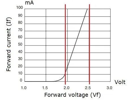 LED 是具有非线性电气特性的器件。如果对 LED 施加低电压,则它不会导通。通过增加电压,达到一个阈值,高于该阈值,器件通过发光和吸收大量电流立即进入导通状态。但是,如果进一步增加电压,LED 会在短时间内过热并烧坏。因此,为了确保正确和持久的操作,LED 必须在将导通状态与阻断状态分开的窄电压带中工作(图 1)。