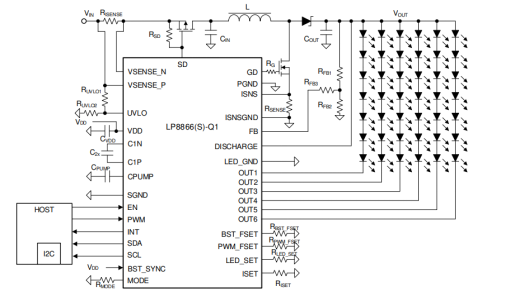 LP8866-Q1是TI新出的一款规LED背光驱动芯片,主要针对于汽车大屏背光LED驱动解决方案研发的。