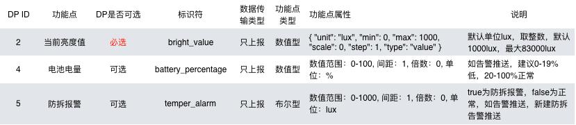 当前亮度:基础功能,产品必选,上报最新数据,依赖采集频率最近一次数值(非实时)