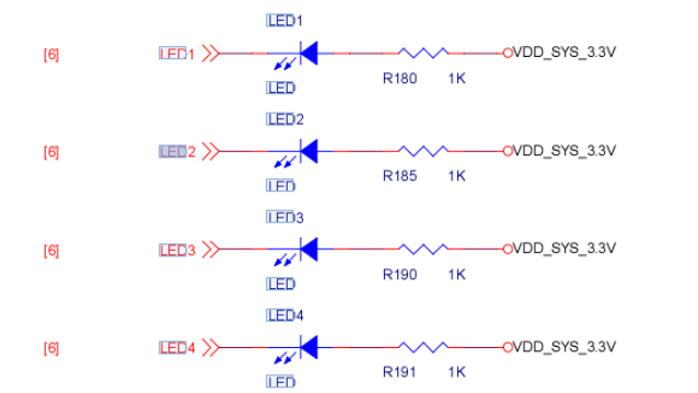 通过看开发板我们可以知道LED灯的位置的核心板上,在核心板上找到LED的电路图,Ctrl+F可以在文档中快捷查找: