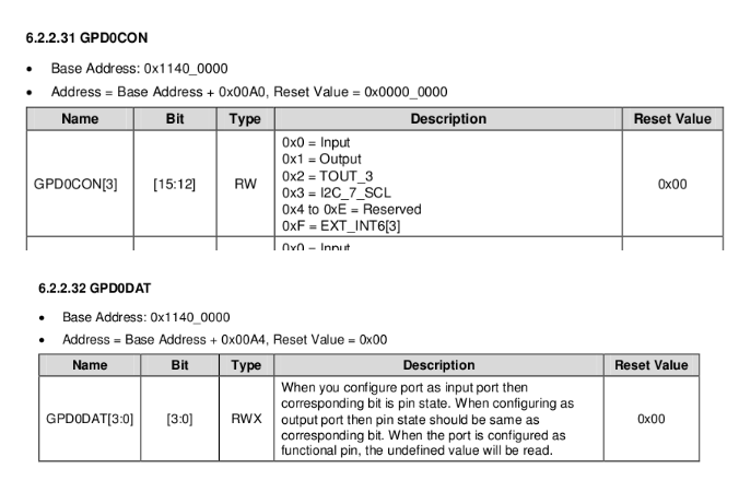 2 #define GPD0DAT (*(volatile unsigned long*)0x114000a4)