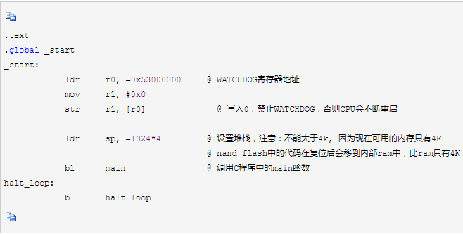 首先是一段汇编代码,由这段汇编代码引导到main函数,同时进行相应的硬件配置