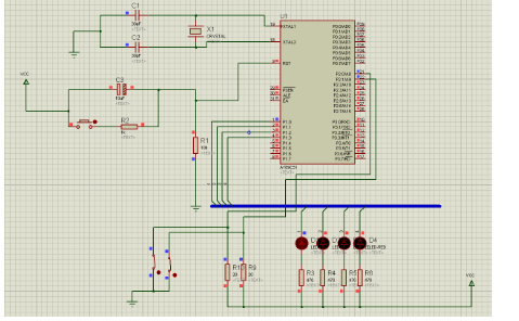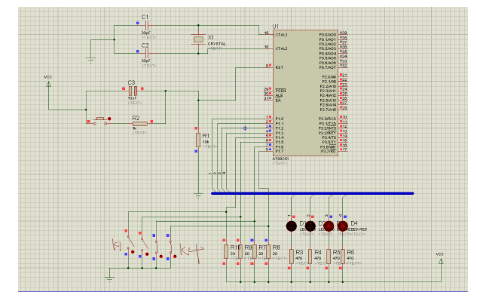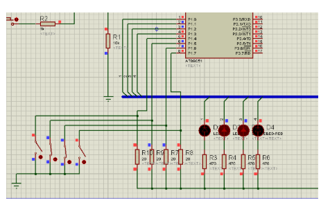 具体电路图如下: K1--K4闭合,控制 D1—D4 亮灭