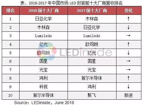 2017年中国LED封装市场前十