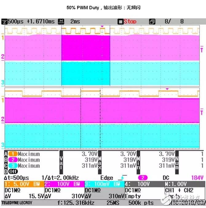2、1%~100%范围PWM 调光,PWM200Hz-4KHz的输入调光频率