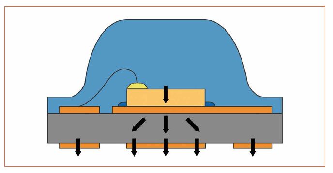 了解LED外壳中的热传导路径非常重要,因为它能够正确选择后续系统组件(PCB,焊盘等)。