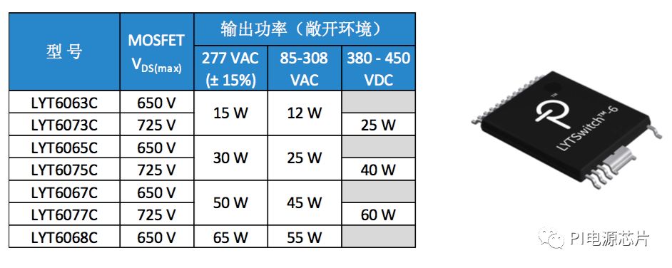 【图2,采用InSOP-24C封装的LYTSwitch-6产品系列】