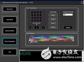 STEVAL-ILL061V1(图6)是LED1642GW驱动器的应用演示板,是一个高亮度RGB LED阵列系统板,有局部调光和基于STM32微控制器和SPI接口的诊断功能。ST L7981 DC/DC转换器为整个电路板提供电源。该演示板实现三个LED驱动器和一个LED色温调节器,提供多个照明功能和图形效果,例如,总体亮度变化,随机颜色速度、颜色波浪、可设置动画和错误检测。