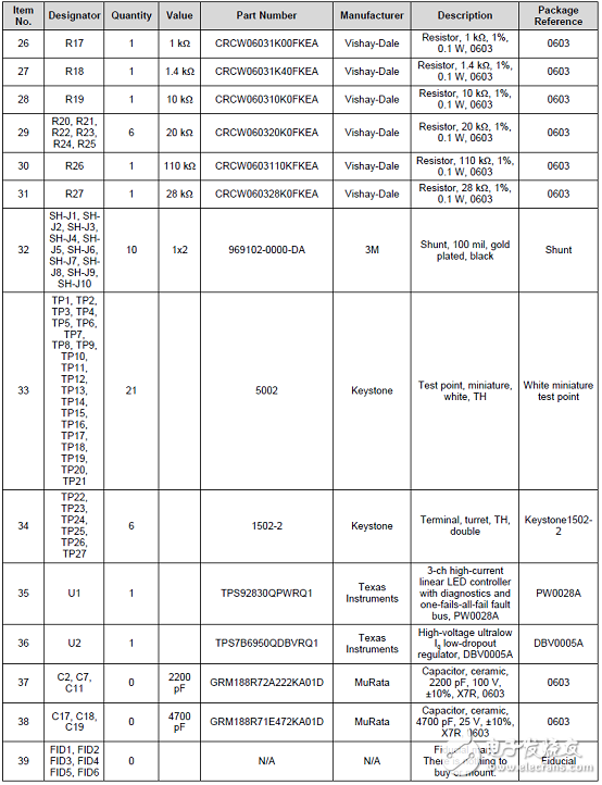 评估板TPS92830-Q1 EVM材料清单: