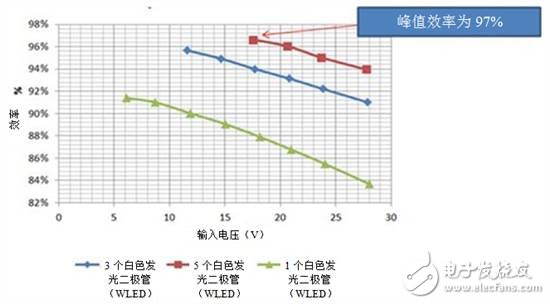 当驱动LED灯串时,TPS54200具有较低的RDS(on)值,提供高效率。引线框上倒装芯片(FCOL)技术可最大限度地减小模具和封装引线之间的电感和电阻。通过其低导通电阻,该器件能够高效(97%的峰值效率)运行,并保持监控摄像头的功耗尽可能低。参见图2。