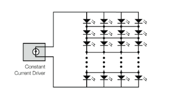 在矩阵配置中,LED可以以并行配置的方式进行相似地配置,但是串与串之间每个LED都会连接。这种配置的最大优点是,如果单个LED变成开路,则仍然存在一条路径让电流流过该串中的所有其他LED,因此光输出几乎不减少。主要的缺点在于,由于不能使用电流平衡装置,因此更难控制每个串中的电流。这意味着所使用的LED必须具有紧密匹配的正向电压,这可能增加成本。